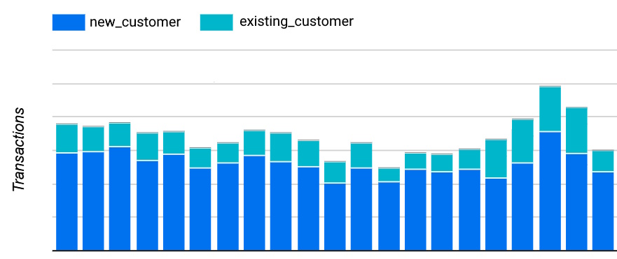 Analyze which marketing channels and campaigns drive new versus existing customers. For example, you can notice that some campaigns resulted in more new or existing customer sales than expected.