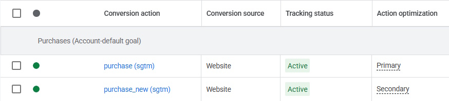 Create separate conversion actions for new and returning customer purchases for optimization, reporting, and remarketing audience creation.