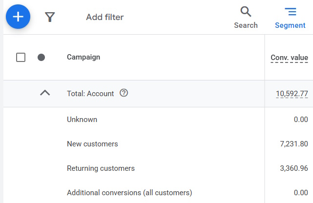 And you could see Conversions and Conversion Value attributed to New or Returning customers.